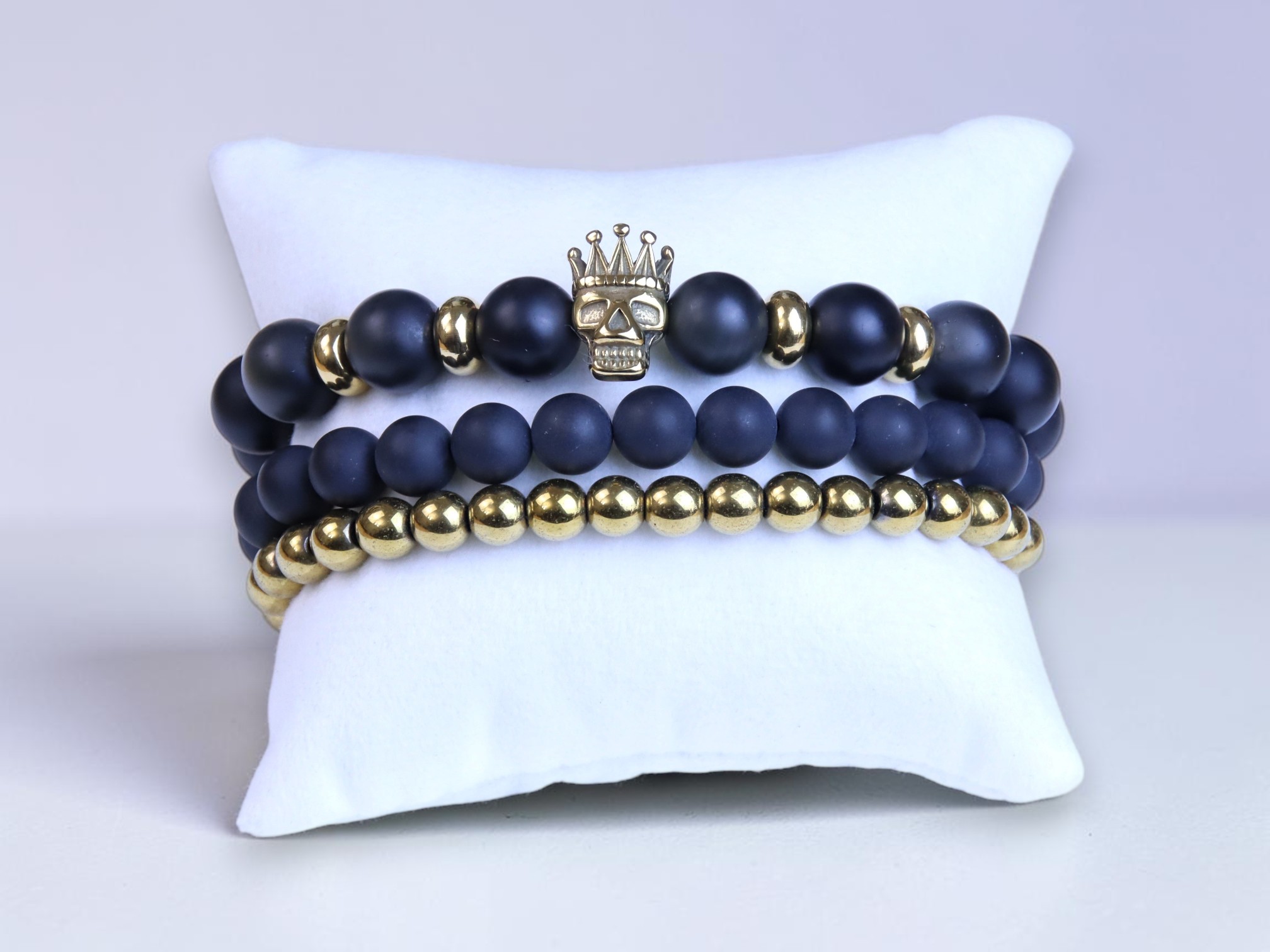 BOYBEADS "Gibbons" Small 6mm matte black obsidian + lapis lazuli handmade bracelet